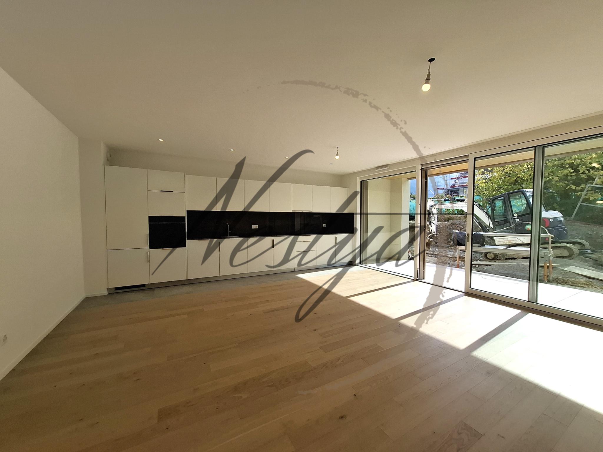 Ce bel appartement rez-jardin de 3 pièces est entièrement neuf.